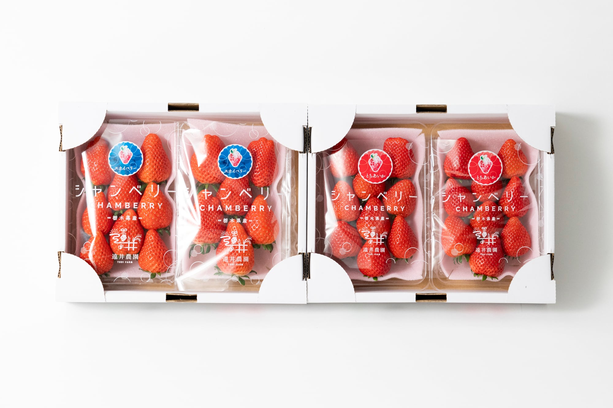 遠井農園の「とちおとめ」「とちあいか」の4パックセットです。
